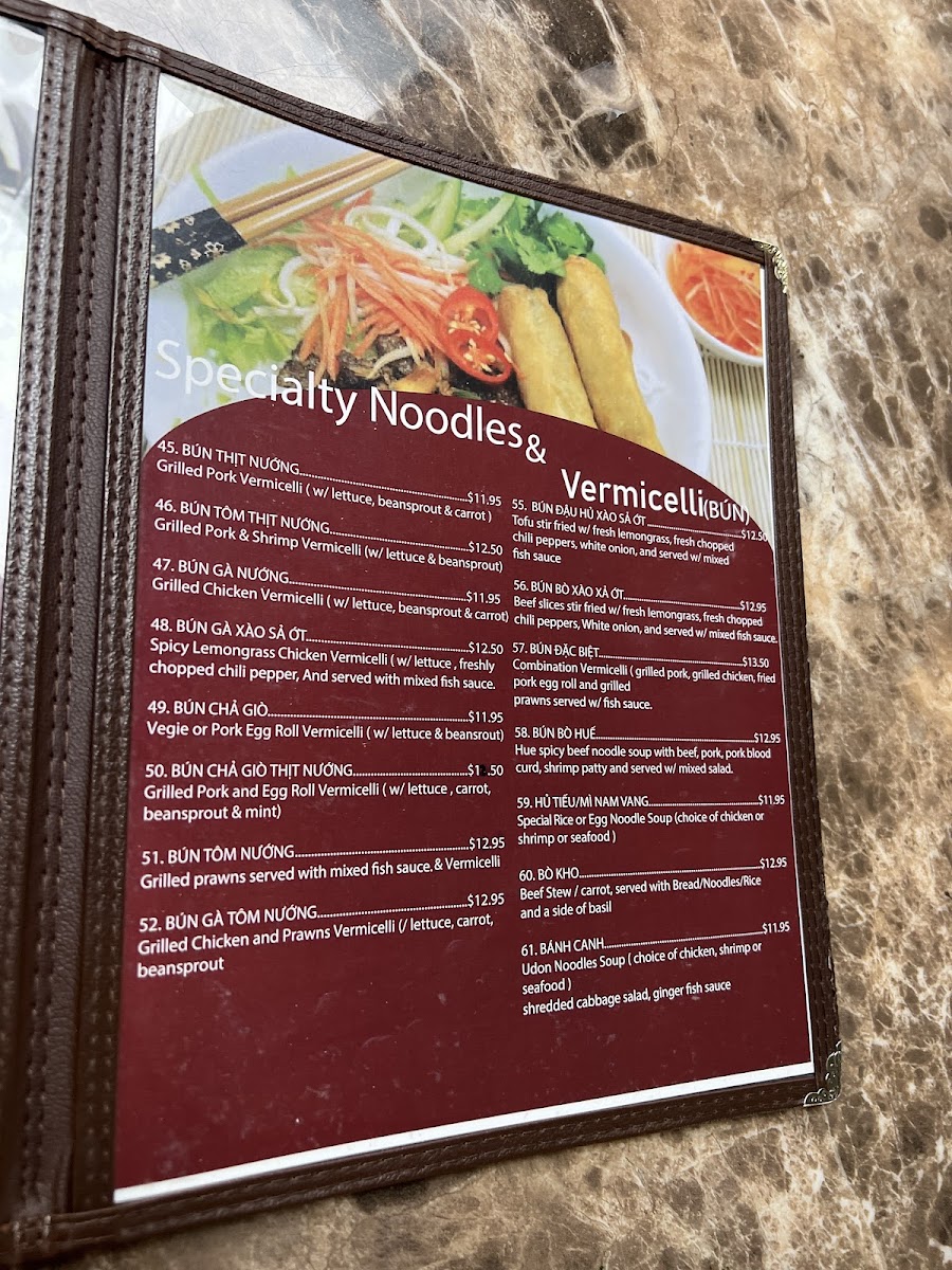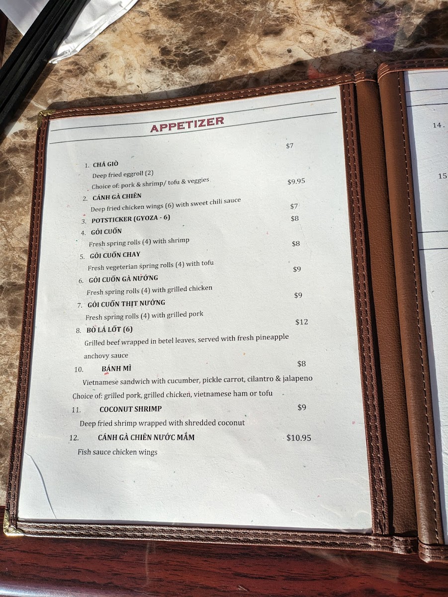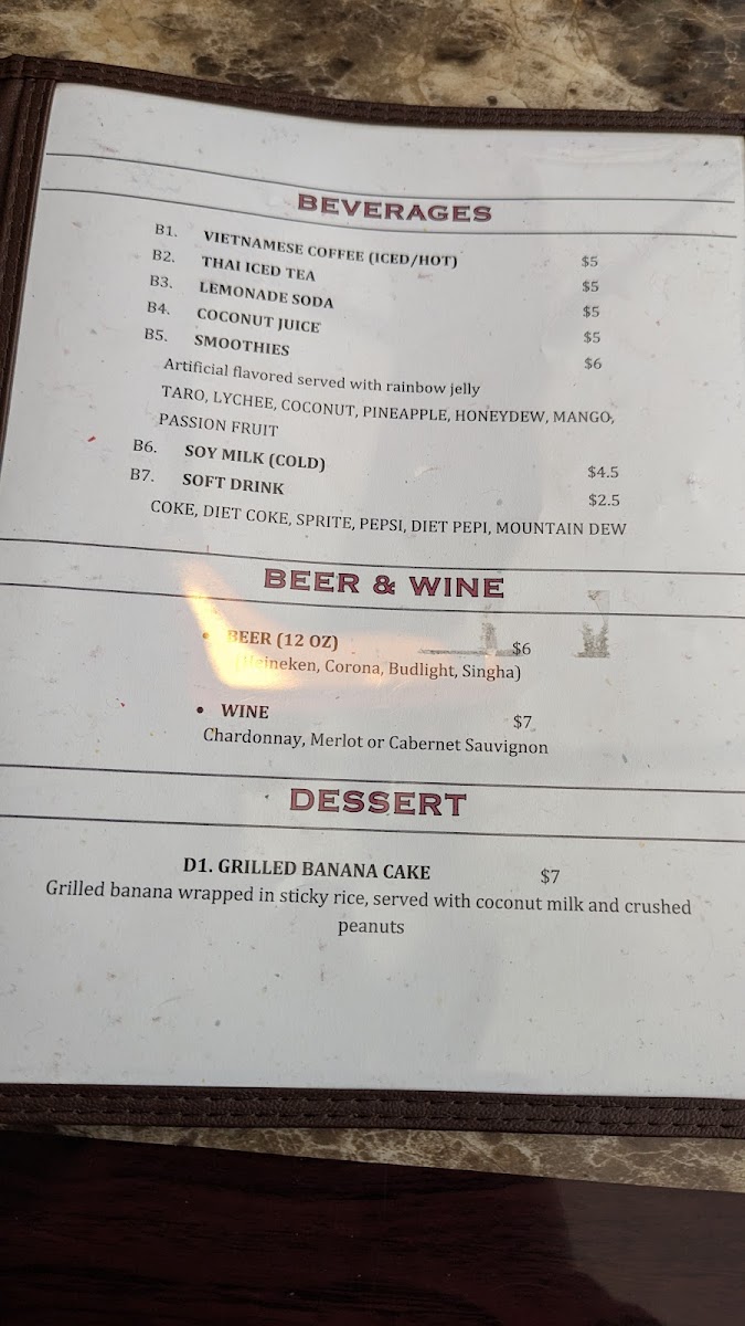 Alongside the food, drinks like Vietnamese iced coffee with condensed milk or mango bubble tea offer a pleasant way to unwind and complement the meal. Whether stopping by for a casual lunch or sharing a cozy dinner, the menu’s blend of flavors fits naturally within a warm and inviting atmosphere.